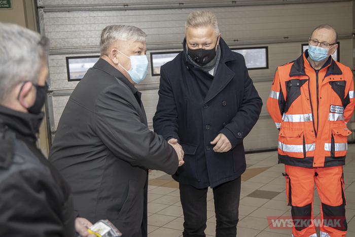 (Zam: 08.02.2021 r., godz. 11.08)W krótkiej uroczystości wzięli udział przedstawiciele władz powiatu i szpitala, który dysponuje nowymi karetkami dzięki wsparciu z Funduszu Inwestycji Lokalnych.