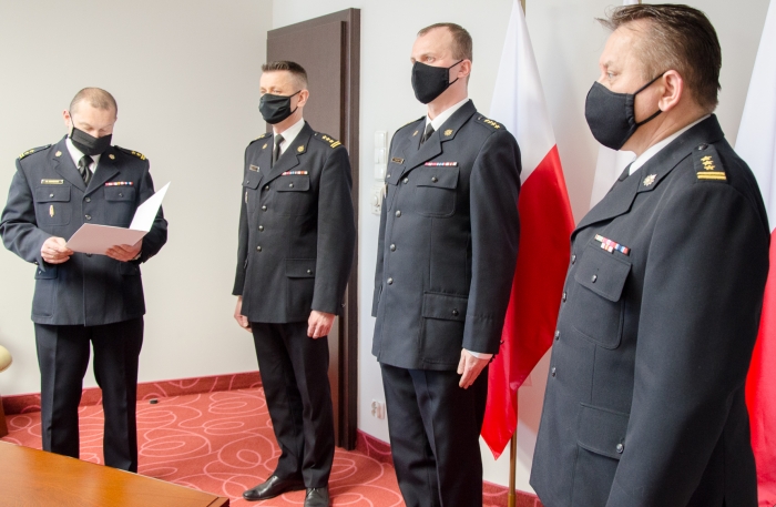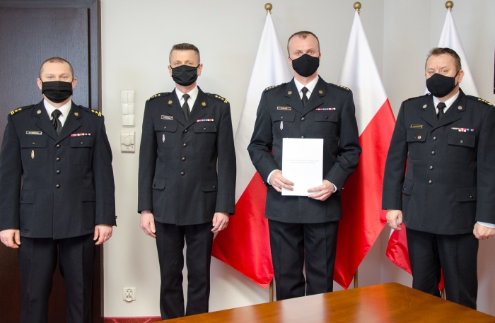 (Zam: 11.02.2021 r., godz. 18.01)Wręczenie aktu powołania odbyło się w siedzibie Komendy Wojewódzkiej PSP w Warszawie. W spotkaniu udział wzięli: mazowiecki komendant wojewódzki PSP st. bryg. Jarosław Nowosielski, komendant powiatowy PSP w Wyszkowie st. kpt. Rafał Balcer, zastępca komendanta powiatowego PSP w Wyszkowie st. bryg. Sławomir Pietrzak, naczelnik wydziału kadr Komendy Wojewódzkiej PSP w Warszawie bryg. Marcin Konecki.