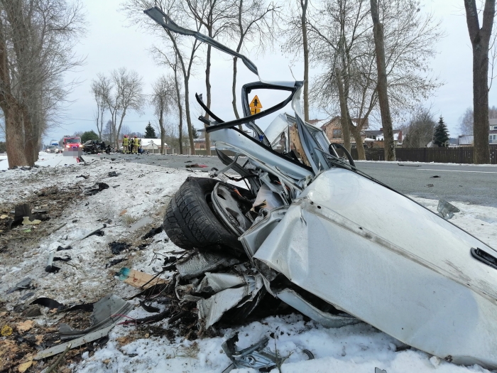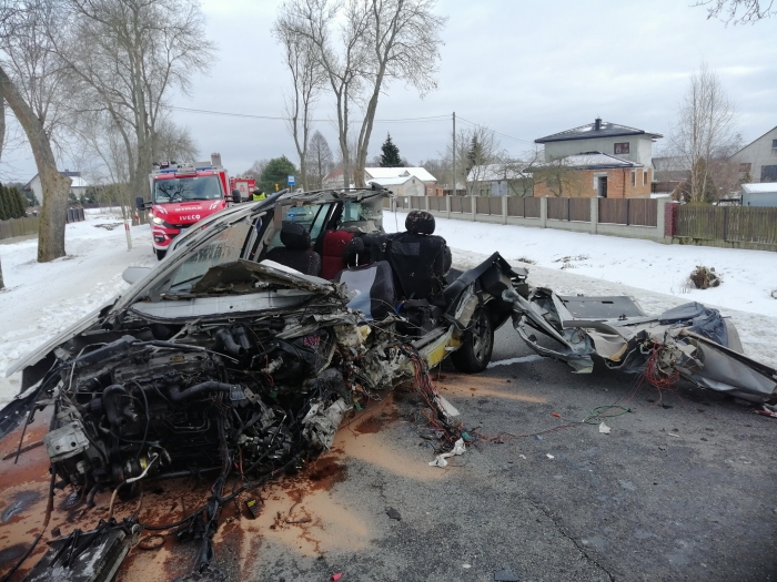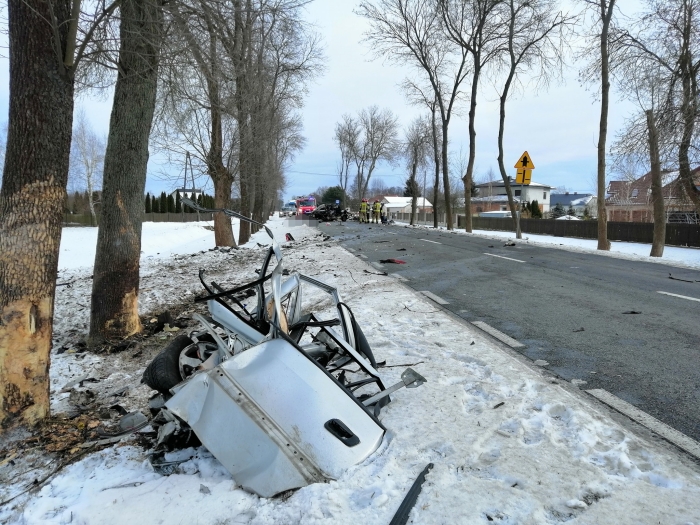 (Zam: 14.02.2021 r., godz. 16.49)Ze wstępnych ustaleń policjantów ruchu drogowego wynika, że 35-letni kierowca opla, mieszkaniec powiatu wyszkowskiego, jadąc w kierunku Wyszkowa zjechał na lewą stronę drogi i uderzył w drzewo. Do zdarzenia doszło na prostym odcinku drogi w obszarze zabudowanym przy ograniczeniu prędkości do 50 km/h. W wyniku silnego uderzenia w drzewo auto rozpadło się na części. 35-letni kierowca w wyniku poniesionych obrażeń poniósł śmierć na miejscu. Droga przez około 2 godziny była całkowicie zablokowana. Policjanci pod nadzorem prokuratora wykonali czynności procesowe m.in. oględziny pojazdu, miejsca, szkice zdarzeniowe oraz przesłuchali świadków.