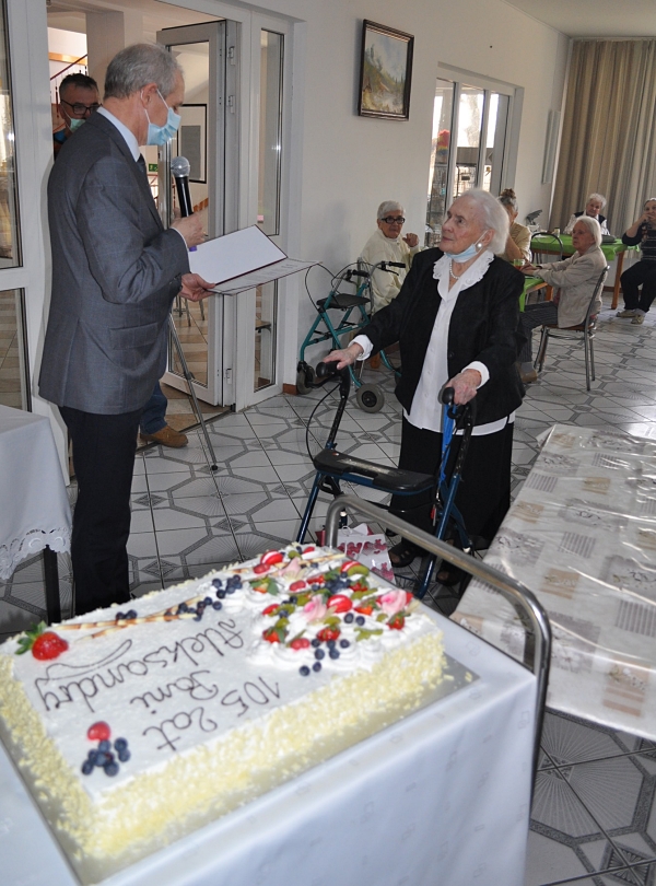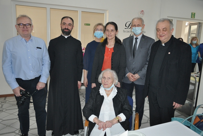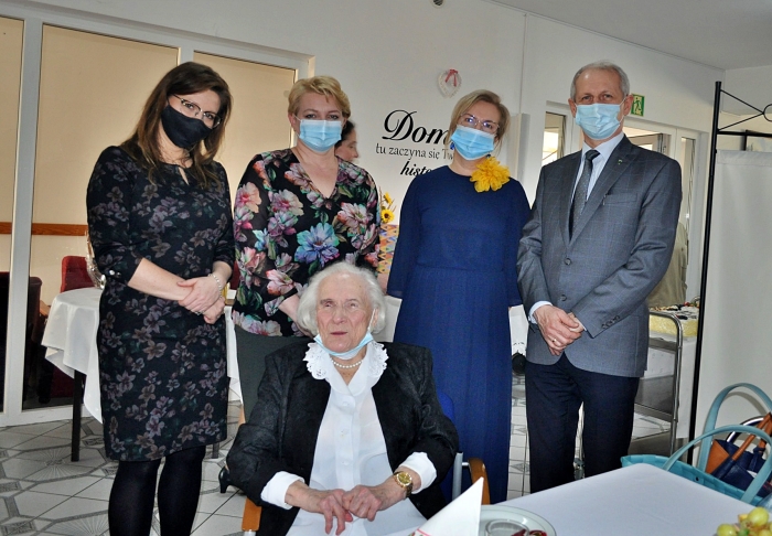 (Zam: 02.03.2021 r., godz. 12.39)Pogoda ducha, uśmiech, pozytywne podejście do ludzi, optymizm to cechy pani Aleksandry podziwiane przez gości jubileuszowego spotkania. Jubilatka przyjęła kwiaty i upominki od rodziny, przyjaciół, dyrektora Domu Emeryta ks. Grzegorza Sikorskiego, pracowników placówki. Życzenia złożyli też przedstawiciele władz gminnych - wójt Wiesław Przybylski, przewodnicząca Rady Gminy Ewa Wielgolaska, skarbnik gminy Katarzyna Kempista, zastępca kierownika Urzędu Stanu Cywilnego Iwona Bralewskia. Upominek przekazał również starosta Jerzy Żukowski.