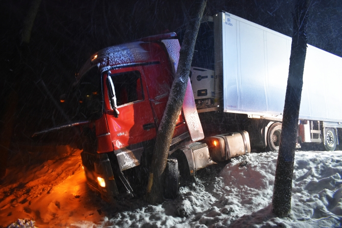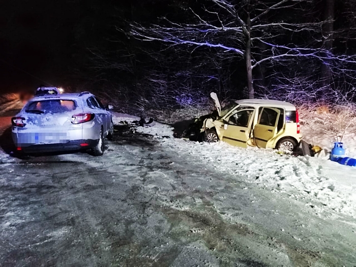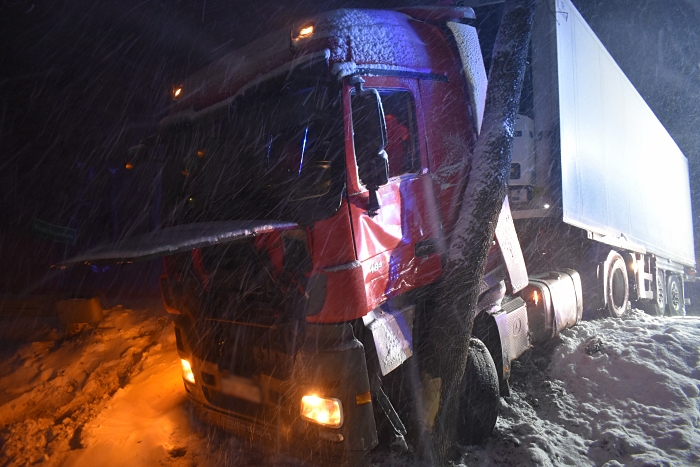 Do kolejnego groźnego zdarzenia doszło na drodze wojewódzkiej nr 618 w Wielątkach Rosochatych o godz. 23.45. Jak wstępnie ustalili policjanci drogówki, 56-letni kierowca ciężarówki z naczepą również nie dostosował prędkości do panujących warunków drogowych. Mieszkaniec powiatu węgrowskiego stracił panowanie nad samochodem w wyniku czego zjechał do przydrożnego rowu i uderzył w drzewo. Kierowca ciężarówki został przewieziony do szpitala. Badanie alkomatem wykazało, że był trzeźwy.
