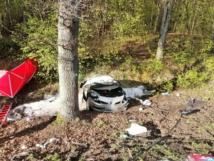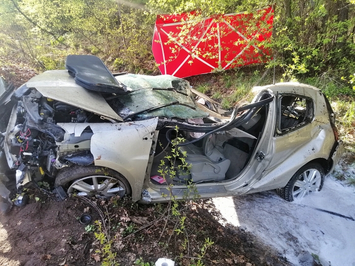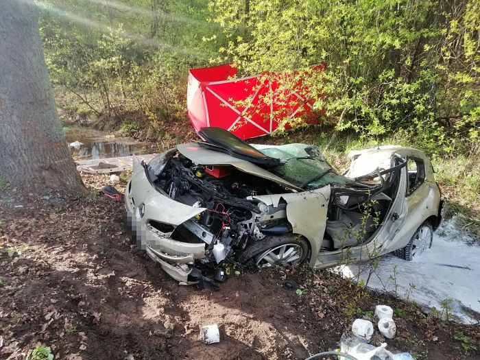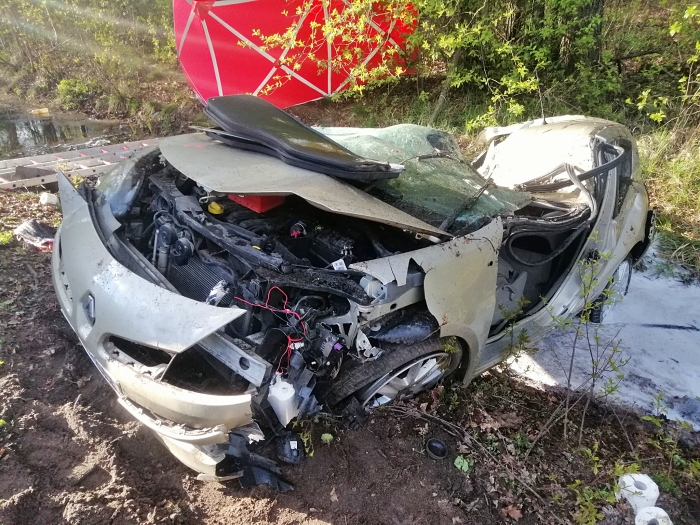 (Zam: 25.04.2021 r., godz. 20.13)Policjanci wstępnie ustalili, że auto wpadło w poślizg. 46-letni kierowca stracił kontrolę nad samochodem, który zjechał do przydrożnego rowu z wodą, uderzył w drzewo, a następnie dachował.