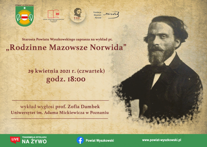 Starosta Powiatu Wyszkowskiego zaprasza na wykład pt. „Rodzinne Mazowsze Norwida”, organizowany w ramach Powiatowych Obchodów 200. Rocznicy urodzin Cypriana Norwida.