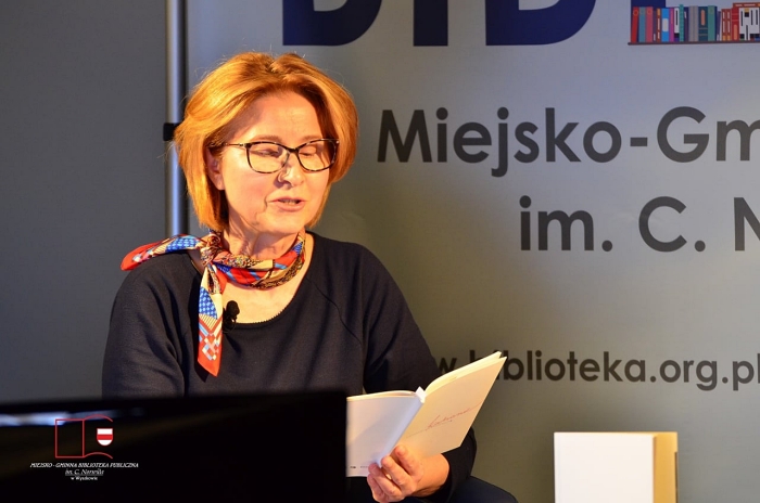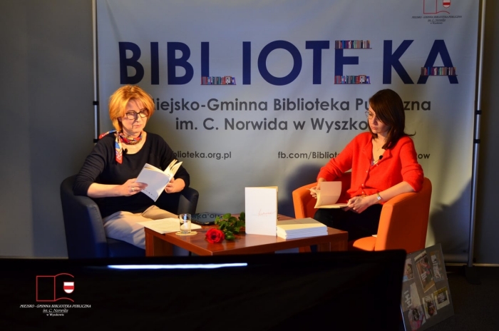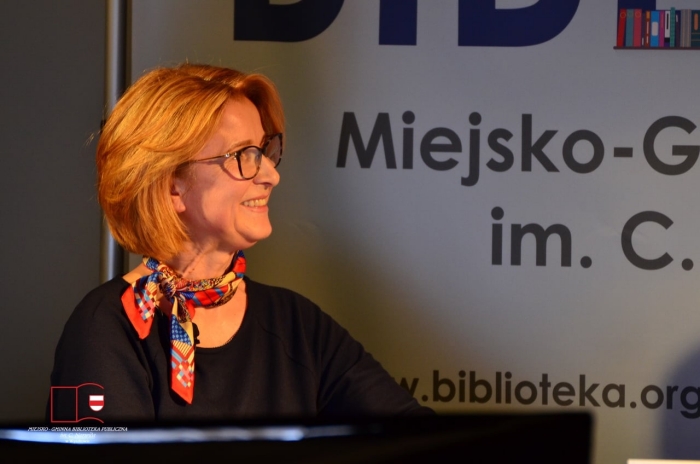 Podczas spotkania w bibliotece autorka wspominała swoje dzieciństwo i lata nastoletnie, które spędziła w Białymbłocie, w leśniczówce Jegiel.