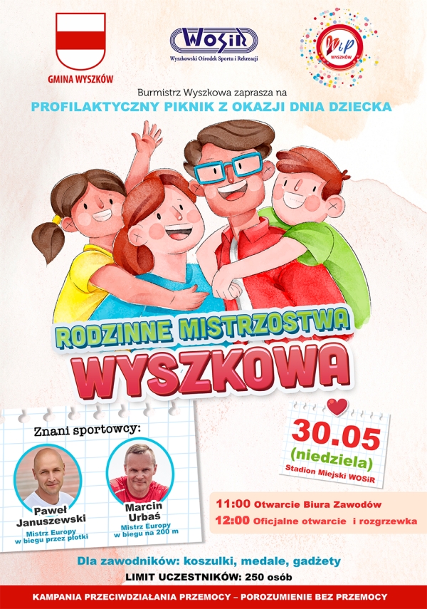 (Zam: 20.05.2021 r., godz. 15.04)Impreza odbywająca się pod patronatem burmistrza będzie piknikiem z okazji Dnia Dziecka z udziałem znanych sportowców Mistrza Europy w biegu przez płotki Pawła Januszewskiego i Mistrza Europy w biegu na 200 m Marcina Urbasia.