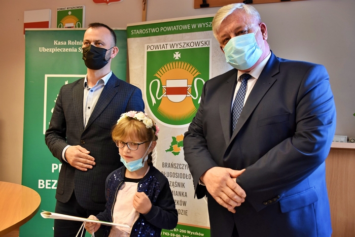 Dzieciom oraz opiekunom nagrody i gratulacje przekazali Bartłomiej Goliszewski - zastępca kierownika wydziału samodzielnego Referatu Prewencji Rehabilitacji i Orzecznictwa Lekarskiego OR KRUS oraz starosta Jerzy Żukowski.