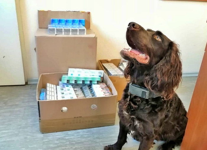 Funkcjonariusze zastali na miejscu obywatela Armenii. Mężczyzna zapewniał, że nie ma papierosów. Kryminalni nie dali mu wiary. Przeszukali pawilon z wykorzystaniem przeszkolonego psa, który na codzień służy w Urzędzie Celno-Skarbowym. Wewnątrz pomieszczenia w kartonowych pudełkach znaleźli papierosy bez polskich znaków akcyzy skarbowej. W sumie zabezpieczyli 14 tys. nielegalnych papierosów. Wstępnie straty Skarbu Państwa oszacowano na ponad 16 tys. zł.