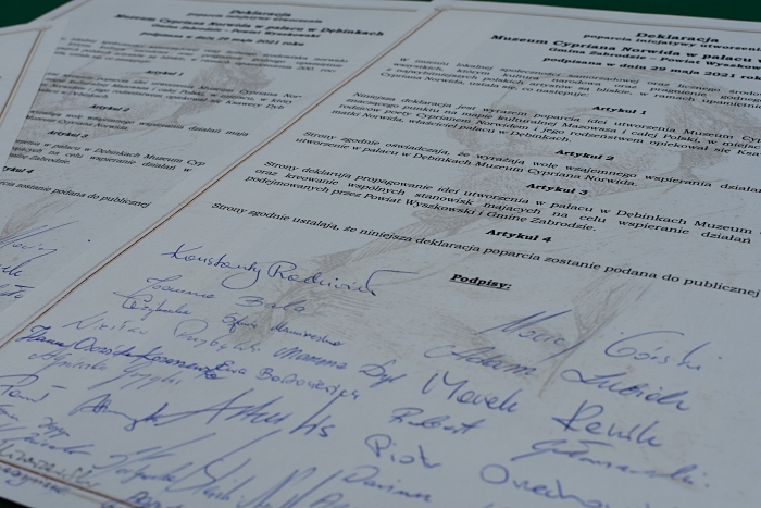 Podpisana deklaracja składa się z 4 artykułów, w których podpisujące go strony zadeklarowały wolę wzajemnego wspierania działań mających na celu utworzenia Muzeum Cypriana Norwida. Sygnatariusze: poseł RP Maciej Górski, wojewoda Konstanty Radziwiłł, radna sejmiku województwa mazowieckiego Joanna Bala, przewodniczący Rady Powiatu w Wyszkowie Waldemar Sobczak, wójt gminy Zabrodzie Krzysztof Jezierski, przewodnicząca Rady Gminy Zabrodzie Sylwia Maria Marciszewska, prezes Fundacji Museion Norwid Jacenty Matysiak, starosta powiatu wołomińskiego Adam Lubiak, wicestarosta powiatu węgrowskiego Marek Renik, burmistrz Łochowa Marek Gołaszewski, wójt gminy Strachówka Piotr Orzechowski, przewodnicząca Rady Gminy Dąbrówka Agnieszka Gryglas, wójt gminy Jadów Dariusz Kokoszka, wójt gminy Brańszczyk Wiesław Przybylski, zastępca wójta gminy Rząśnik Paweł Abramczyk, sekretarz gminy Klembów Agnieszka Sosnowska, radne powiatu wyszkowskiego: Ewa Bartosiewicz, Teresa Hanna Czajkowska, Renata Rębała, Iwona Wyszyńska, Marzena Dyl i Agnieszka Ołdak-Prokop.