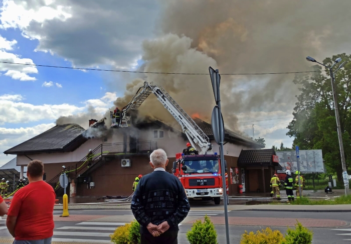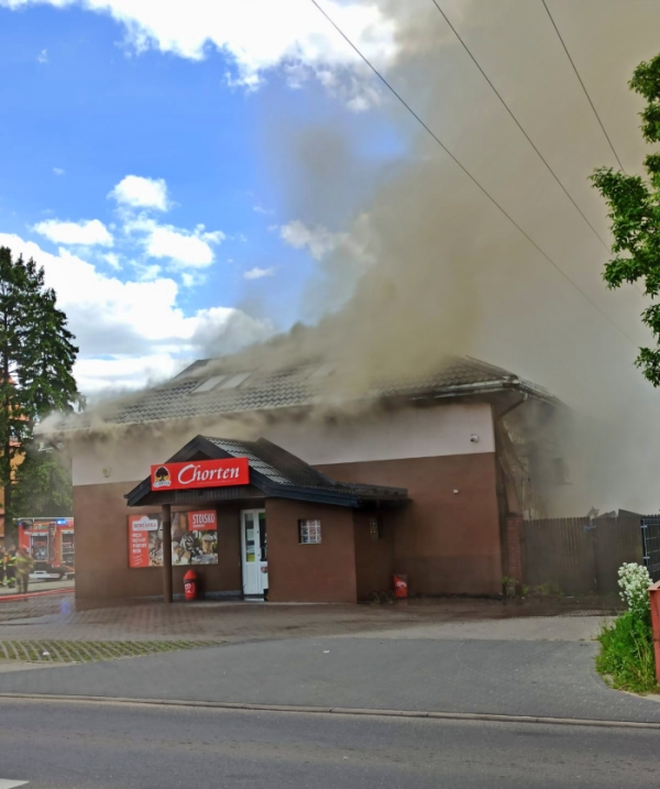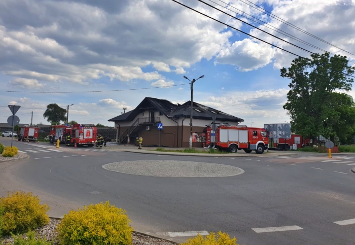 (Zam: 03.06.2021 r., godz. 17.15)Kiedy na miejsce przyjechali strażacy, pożarem objęte było poddasze budynku, a spod dachu wydobywał się intensywny dym. Strażacy zabezpieczyli miejsce zdarzenia i przystąpili do gaszenia pożaru. Do działań wykorzystali również podnośnik, by mieć lepszy dostęp do wnętrz poddasza. Po ugaszeniu pożaru rozpoczęli prace rozbiórkowe, aby wykluczyć obecność ukrytych zarzewi ognia.