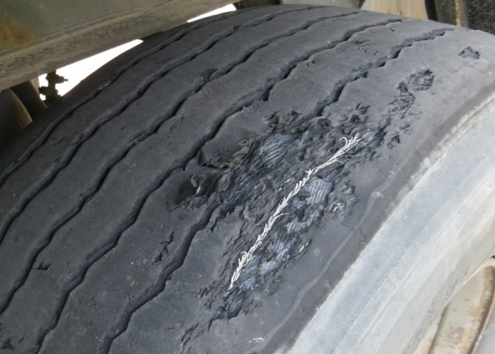 (Zam: 16.06.2021 r., godz. 12.08)We wtorek rano policjanci patrolowali drogę ekspresową S8. W Niegowie zatrzymali kierującego ciężarówką z naczepą, 55-letniego mieszkańca powiatu wołomińskiego. Powodem kontroli był zły stan naczepy. W trakcie kontroli policjanci natrafili uszkodzoną oponę, z której wystawały druty zbrojeniowe, oraz zużyty bieżnik w innej oponie. Dodatkowo naczepa miała uszkodzony zamek tylnej burty - na jezdnię wysypywał się żwir.