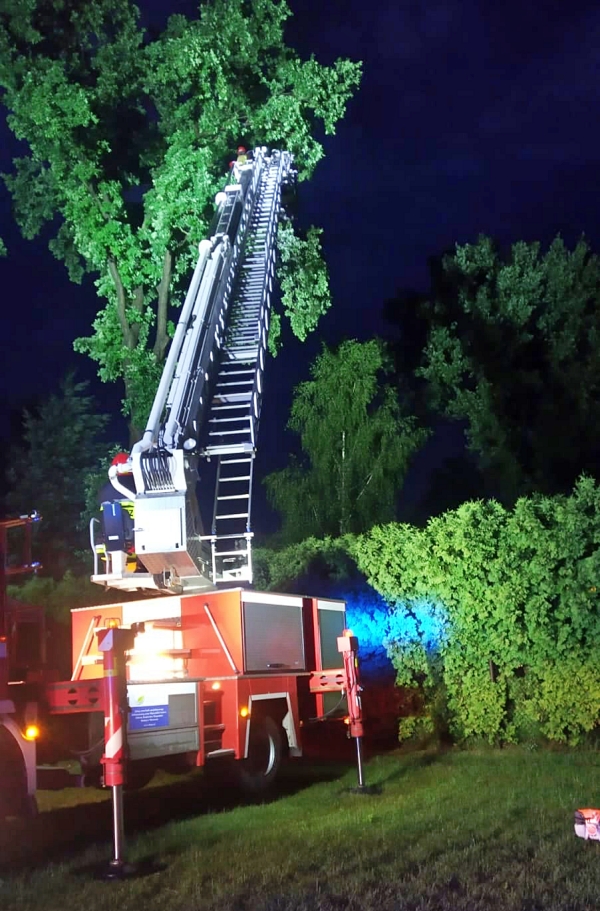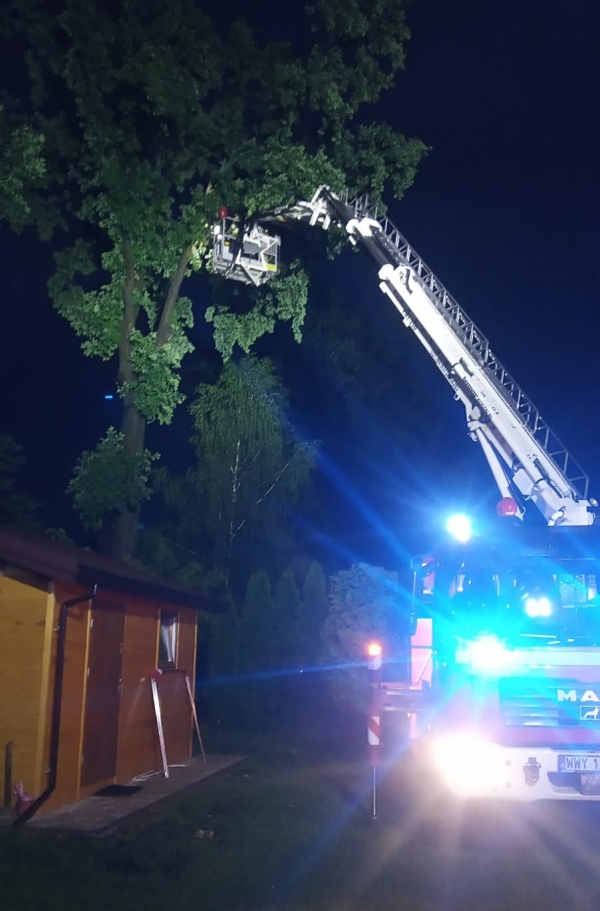 Skutki wtorkowej burzy - pożar, powalone drzewa, zerwana linia