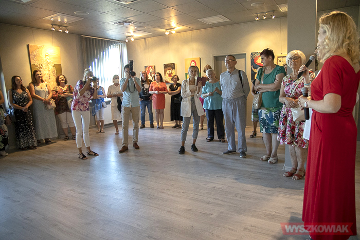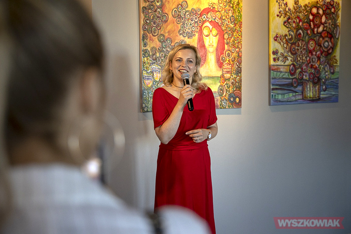 - Dużo pięknych barw pięknej autorki - podkreśliła witając gości dyrektor Małgorzata Ślesik-Nasiadko. - Jest osobą raczej radosną i pogodną, i jak my wszyscy szuka w życiu szczęścia. Stąd ta feeria barw w pracach - przedstawiła bohaterkę wieczoru.