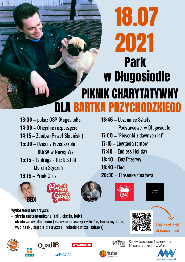 (Zam: 17.07.2021 r., godz. 17.39)W styczniu 2021 roku 26-letni mieszkaniec gminy Długosiodło Bartek Przychodzki uległ poważnemu wypadkowi komunikacyjnemu. Doznał złamania kręgosłupa piersiowego i uszkodzenia rdzenia kręgowego. Ma niedowład kończyn dolnych. Szansą na powrót do sprawności jest długa, nieprzerwana, ciężka i bardzo kosztowna rehabilitacja.