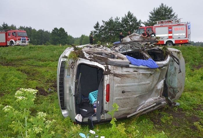 (Zam: 10.07.2021 r., godz. 12.53)Do groźnego wypadku doszło 10 lipca po godz. 6.00 na krajowej 62 w Kamieńczyku. Według wyszkowskich policjantów, 50-letnia kierująca jadąc w stronę Wyszkowa na łuku nie dostosowała prędkości do warunków panujących na drodze, straciła panowanie nad kią. Auto wypadło na przydrożną łąkę i dachowało. W tym czasie trasa po intensywnych opadach deszczu była mokra. Samochodem podróżowała rodzina z Mińska Mazowieckiego, w tym nastolatek.