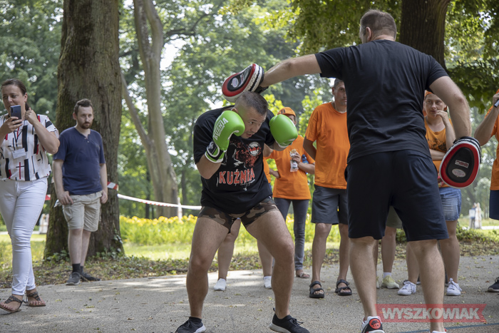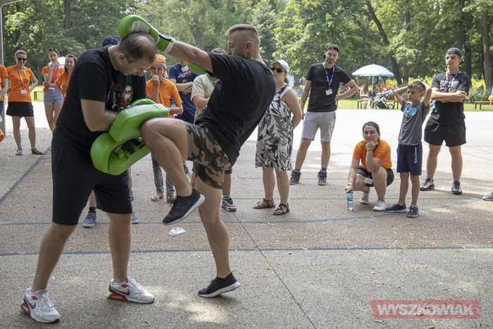 Mimo upalnego dnia uczestnikom nie brakowało chęci do zabawy, sportu i rekreacji. Organizatorzy zaprosili wszystkich m.in. do wspólnego tańca oraz na pokaz sztuk walki, który przygotowali przedstawiciele klubu Kuźnia Mistrzów Wyszków Paweł Deluga i Piotr Trześniewski.