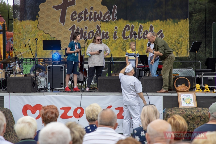 (Zam: 09.08.2021 r., godz. 08.16)Zgodnie z nazwą wydarzenia, wiele mówiono tego dnia o miodzie i chlebie. Z nimi związane były konkursy polegające m.in. na przesiewaniu mąki, czy zlizywaniu miodu. Wśród nagród było pieczywo, miód, maskotki (pszczoły). Imprezę i konkursy poprowadził Mariusz Kubeł, który zachęcał do odwiedzenia stoisk i korzystania z ich oferty. Można było nie tylko dobrze zjeść i napić się (sery, miody, wędlina, pieczywo, lemoniada itp.). Były także dostępne rzeźby, przedmioty z drewna, biżuteria, maskotki, kosmetyki, mydło itp. Dla zainteresowanych był także punkt Narodowego Spisu Powszechnego, a także miejsce, w którym można było zapisać się na szczepienie przeciw COVID-19. Specjalny punkt wystawiła także gmina Wyszków, zachęcając do skorzystania z oferty turystycznej, a także promując dbałość o pszczoły i informując o ich znaczeniu dla przyrody (dostępne były nasiona pomocne w tworzeniu łąki kwietnej). Dla mieszkańców gminy Brańszczyk oraz wszystkich zainteresowanych dostępna była łódź, którą przez Bug do Kamieńczyka transportował szkutnik ludowy z Kamieńczyka Dominik Wichman.