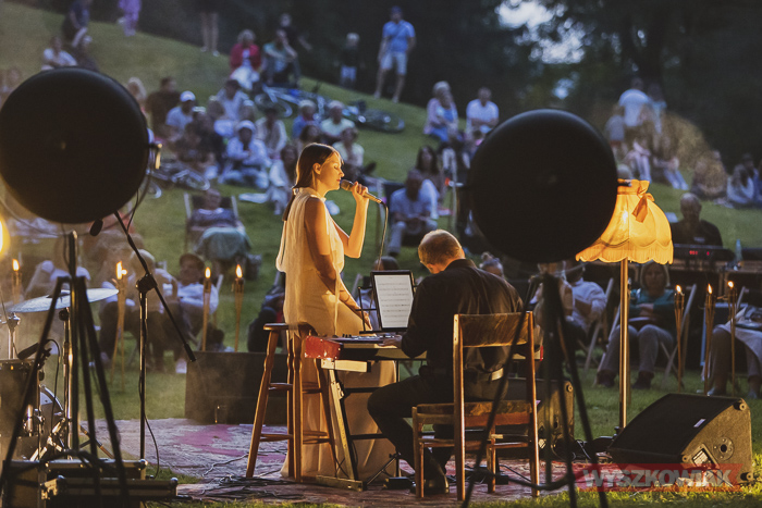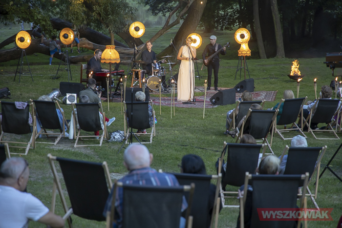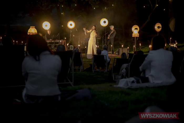 (Zam: 14.08.2021 r., godz. 14.25)Wokalistka i aktorka (występuje w Teatrze Polskim we Wrocławiu w spektaklu „Xięgi Schulza” w reżyserii Jana Szurmieja) dała koncert o zmierzchu, dzięki czemu aranżacje świetlne mogły w pełni podkreślić atmosferę tego wieczoru. Były utwory pochodzące m.in. z filmów takich jak „Vabank”. Rozbrzmiewały melodie m.in. z „Polskich dróg”, „Nocy i dni”. W tym nastrojowym spotkaniu uczestniczyli wyszkowianie, którzy mogli skorzystać z leżaków, koców przygotowanych przez organizatorów (gmina Wyszków, Wyszkowski Ośrodek Kultury „Hutnik”). Artystka zachęcała publiczność do wspólnego wykonania Krystyny Prońko „Psalmu stojących w kolejce”. Zaprosiła też do nabywania swojej płyty „Od nocy do nocy” w specjalnym wydaniu.