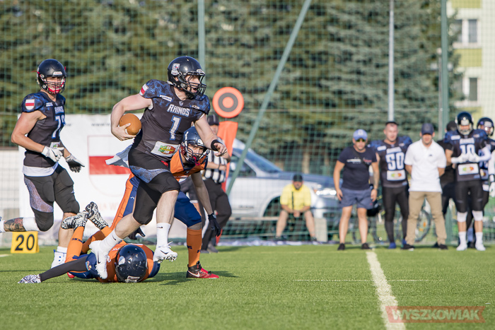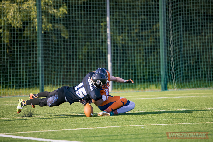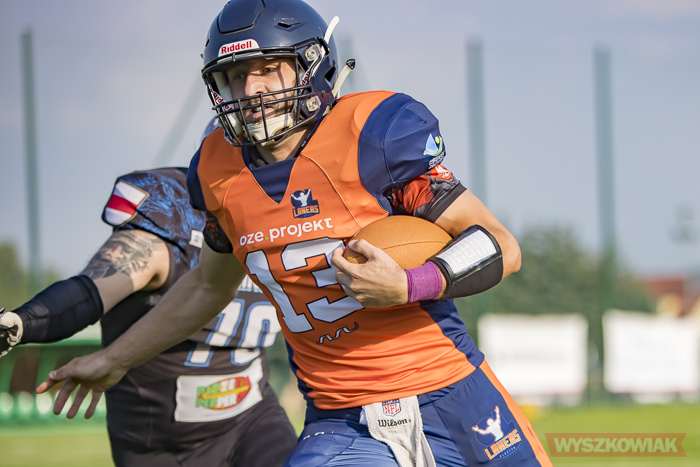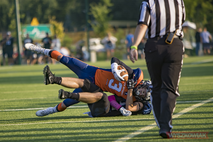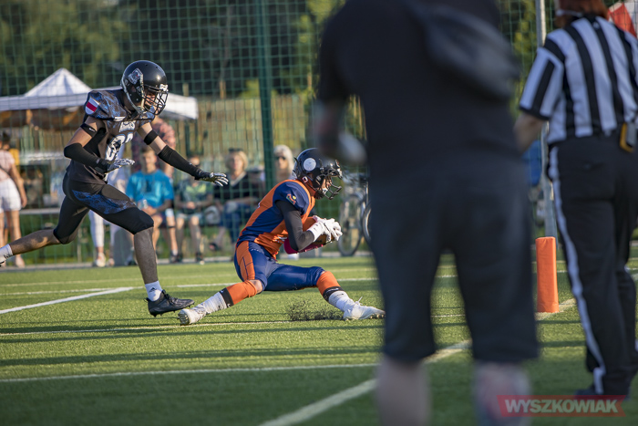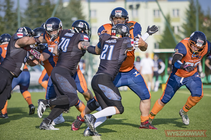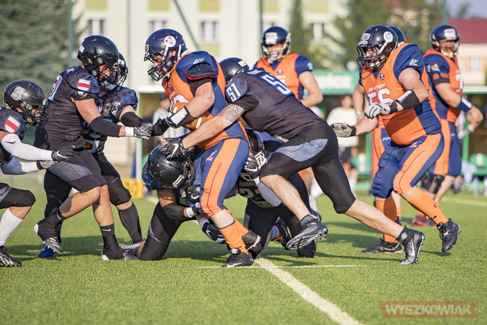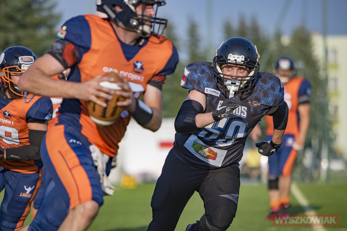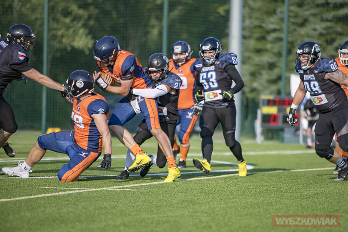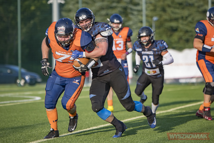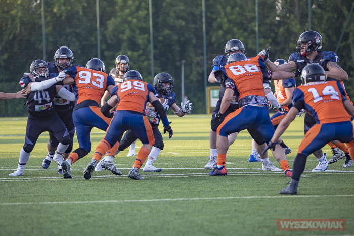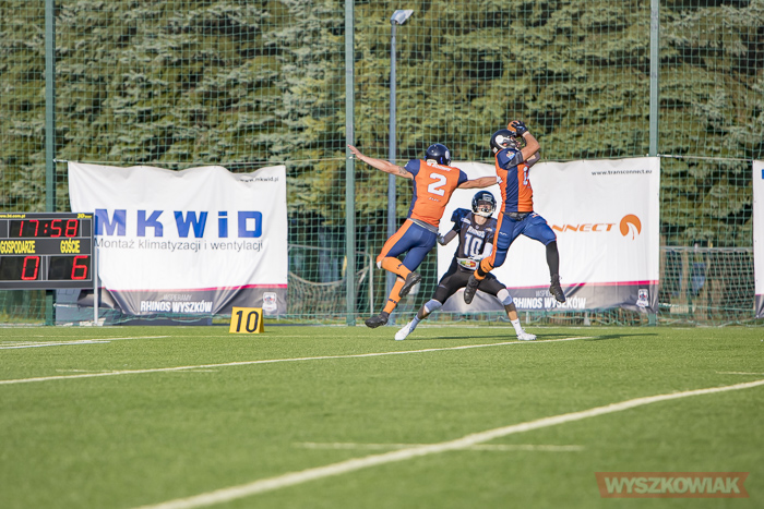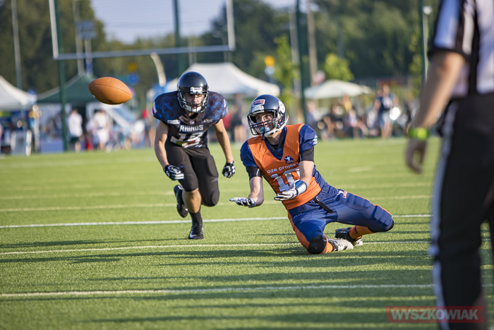 (Zam: 17.08.2021 r., godz. 10.22)Mecz został rozegrany w sobotę 14 sierpnia na stadionie WOSiR w Wyszkowie. Olsztyn Lakers to tradycyjny już rywal Rhinos na inaugurację sezonu. Nieznacznym faworytem meczu byli goście, którzy w ostatnich sezonach osiągają lepsze wyniki. Wyszkowianie nie zamierzali jednak oddać spotkania bez walki, szczególnie na swoim terenie. Goście ze stolicy Warmii potwierdzili swoją siłę już w pierwszej połowie meczu. Mimo bardzo ofiarnej gry wyszkowskiej defensywy, olsztynianie zanotowali dwa przyłożenia. Formacja ofensywna Rhinos była z kolei bezradna i ta sytuacja utrzymała się do ostatniej kwarty spotkania, w której Rhinos w końcu zapunktowali. Było to jednak za mało do zwycięstwa – Olsztynianie zdobyli w tym meczu cztery touchdowny, wygrywając 26:6.