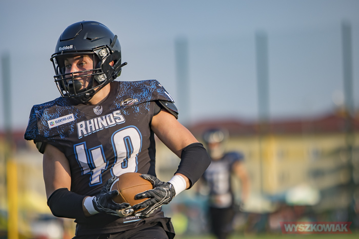 - Początek sezonu z półfinalistą zeszłorocznych rozgrywek z góry w założeniach miał być najcięższym meczem i taki właśnie był – powiedział po meczu prezes Rhinos, Piotr Wykowski – O ile nasza defensywa pokazywała bardzo wiele dobrych akcji, to 3 kwarty w wykonaniu ofensywy były totalnie katastrofalne. Mentalnie ofensywa była wyłączona. Zero gry. W 4. kwarcie zaczęło to jakoś ruszać, ale na odrobienie strat było już za późno. Mecz błędów, inaczej to sobie wyobrażaliśmy. Ale może taki zimny prysznic będzie lepszy w kontekście całego sezonu. Cieszymy się bardzo z bardzo dużej frekwencji kibiców. Dziękujemy rodzicom Miłosza za niesamowitą, pozytywną energię w przygotowaniach. Mamy nadzieje, że chociaż organizacyjnie wygraliśmy dla kibiców