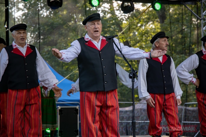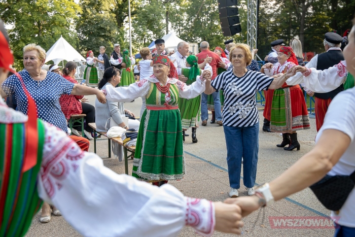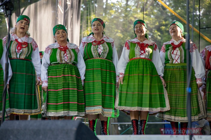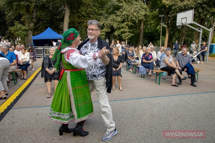 (Zam: 23.08.2021 r., godz. 09.20)Impreza pod hasłem „Wyszków na ludowo” miała wiele akcentów odwołujących się kurpiowskiego dziedzictwa. Był nim m.in. występ Zespołu Pieśni i Tańca "Wyszków" oraz działającego w Wyszkowskim Ośrodku Kultury „Hutnik” Zespołu Pieśni i Tańca „Oberek” z kapelą. Działająca od kierunkiem Danuty Deptuły i Stanisława Kadłubowskiego grupa zaprosiła nie tylko do obejrzenia występu i wysłuchania pieśni, ale też do wspólnego tańca. Zachęcała też do wstąpienia do „Oberka” - zespół prowadzi nabór nowych członków.