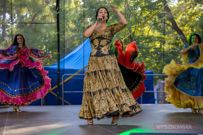 Tę pozytywną energię wspólnej zabawy podtrzymała Patrycja Runo, która również zachęcała do tańca i śpiewu w rytm m.in. romskich melodii. W tym przypadku można było podziwiać wyjątkowy taniec i stroje tancerek.