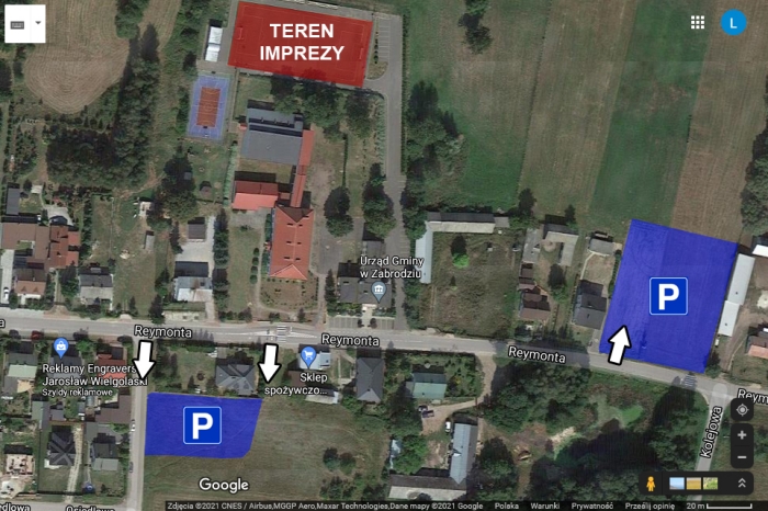 (Zam: 28.08.2021 r., godz. 09.20)Na parkingi dojedziemy z ul. Reymonta. Są ulokowane niedaleko terenu imprezy, która odbędzie się na placu za Urzędem Gminy.
