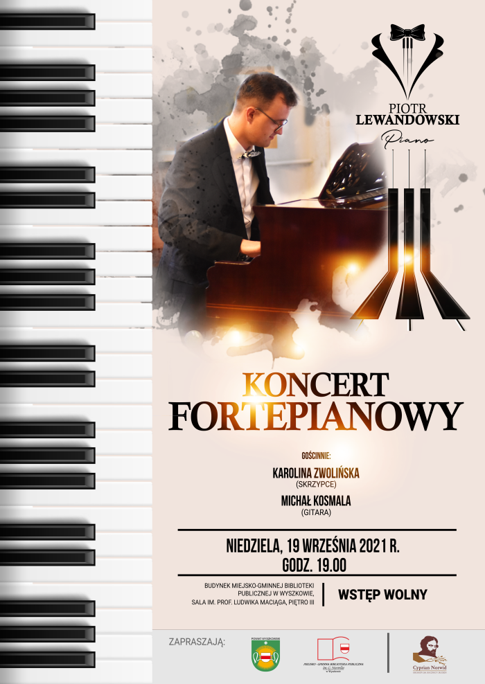 (Zam: 13.09.2021 r., godz. 11.18)LevelPiano - Piotr Lewandowski i goście przeniosą nas w świat wyjątkowej muzyki! - improwizacje, autorskie kompozycje i największe utwory Fryderyka Chopina - to wszystko przed nami już 19 września 2021 r. o godz. 19.00 (sala im. prof. L. Maciąga, budynek biblioteki).Wstęp wolny! Zapraszamy - będzie magicznie!