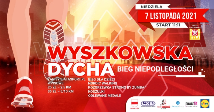 (Zam: 30.09.2021 r., godz. 09.03)Start biegu o godz. 11:11. Trasa atestowana przez Polski Związek Lekkiej Atletyki. W programie: bieg dla dzieci, nordic walking, rozgrzewka Strong by Zumba. Dla zawodników koszulki (białe lub czerwone, z których na starcie zawodnicy utworzą „żywą flagę”), odlewane medale. Wpisowe: 25 zł - 2,5 km, 35 zł - 5/10 km.