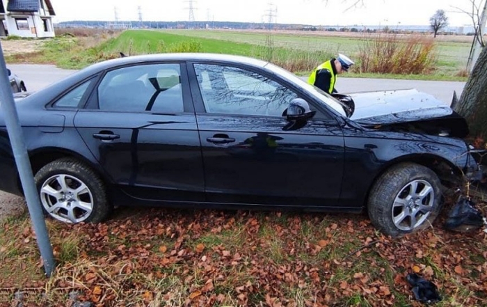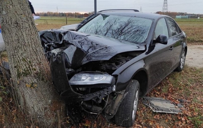 (Zam: 29.10.2021 r., godz. 11.31)Policjanci ruchu drogowego wstępnie ustalili, że kierowca audi nie dostosował prędkości do warunków panujących na drodze, zjechał na prawą stronę pobocza, uderzył w hydrant, a następnie w drzewo. Mieszkaniec powiatu wyszkowskiego został przetransportowany do szpitala.