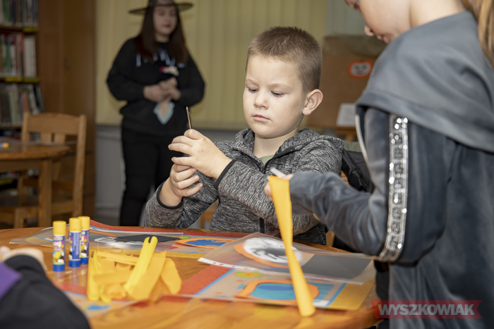 (Zam: 30.10.2021 r., godz. 09.31)Warsztaty dla dzieci w wieku 7-12 lat poprowadziły pracownice Działu dla Dzieci i Młodzieży. Jak zawsze mogły liczyć na duże zaangażowanie uczestników, którzy najpierw dzielili się swoją wiedzą na temat halloween, a później przystąpili do zajęć plastycznych. W programie było przygotowanie dyniowego witrażu oraz pajęczej sieci. Na koniec była możliwość zrobienia pamiątkowego zdjęcia.