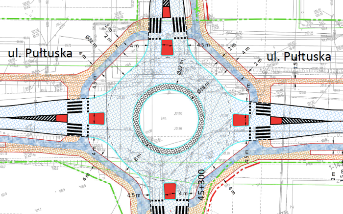 Najlepiej od razu zbudować prawoskręty z pominięciem ronda tzn z Graficznej w Pułtuską oraz z Pułtuskiej w Sikorskiego. Jeśli nie dwa to chociaż ten pierwszy. Zapobiegnie to przyszłej kosztownej rozbudowy ronda. Takie rozwiązanie również odciąży samo rondo.