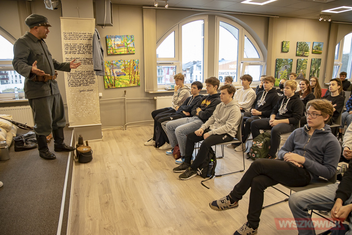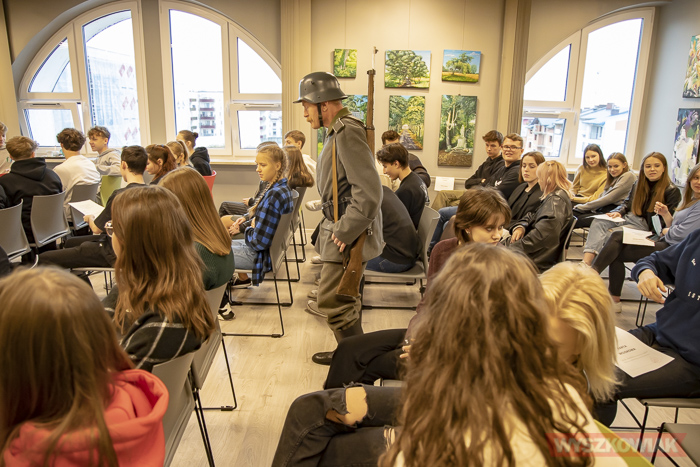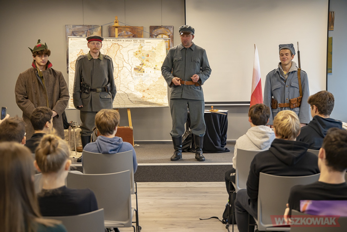 (Zam: 05.11.2021 r., godz. 14.56)Lekcja zatytułowana „123 lata zaborów – marsz ku niepodległości” odbyła się 5 listopada. Była nietypowa o tyle, że nie stanowiła klasycznego wykładu, ale raczej zbiór ciekawostek, wybranych faktów ilustrowanych m.in. prezentacją umundurowania. Lekka forma, chwilami żartobliwa zapewniła podczas spotkania dobrą atmosferę. Wspomniano m.in. polskie powstania, plebiscyt na Górnym Śląsku, rekrutację do Legionów Polskich. W zaimprowizowanej scence młodzież miała okazję przejść „rekrutację” czy zobaczyć jak wyglądało liczenie głosów w plebiscycie. Na koniec uczestniczyła w konkursie wiedzy zdobytej podczas spotkania.