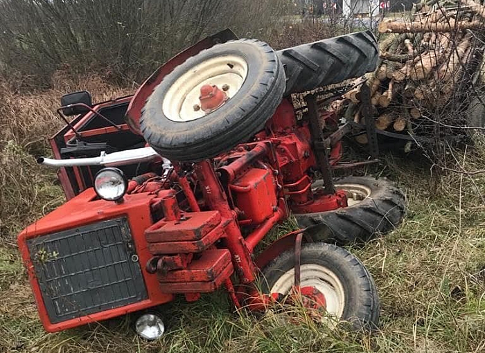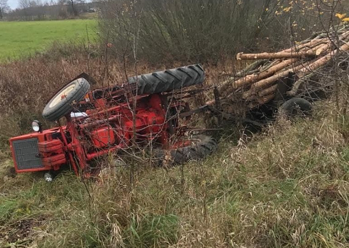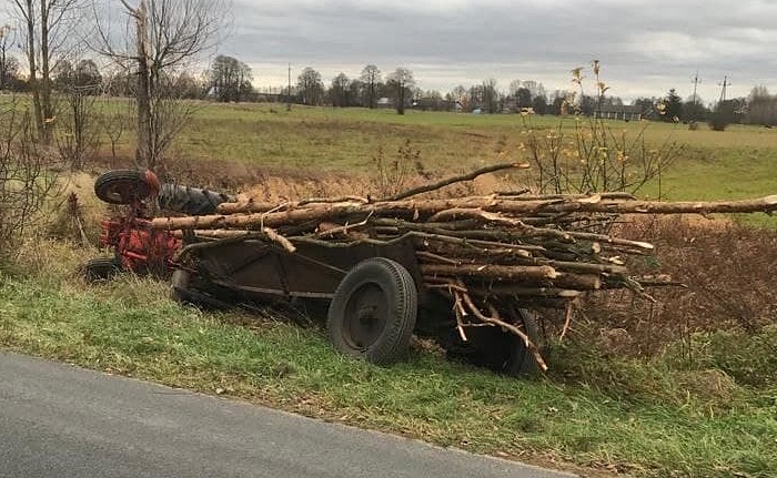 (Zam: 06.11.2021 r., godz. 11.35)Do zdarzenia doszło w piątek 5 listopada o godz. 12.45 w Nowych Budach. Jak wynika ze wstępnych ustaleń policjantów, 53-letni mieszkaniec gminy Brańszczyk kierując ciągnikiem rolniczym ciągnącym furmankę z drewnem stracił panowanie nad pojazdem i zjechał do przydrożnego rowu. Tam maszyna wywróciła się. Alkomat wykazał w organizmie traktorzysty ponad 2,5 promila alkoholu. Po sprawdzeniu w policyjnych systemach okazało się, że 53-latek już wcześniej stracił prawo jazdy. Dodatkowo ciągnik rolniczy nie miał ubezpieczenia OC.
