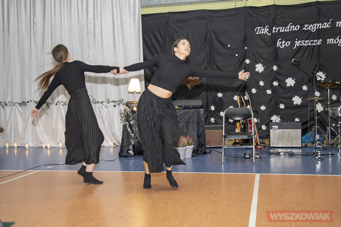 (Zam: 10.11.2021 r., godz. 14.08)Spotkanie odbyło się 9 listopada. W półmroku, przy zapalonych świecach, zdjęciach tych, którzy odeszli spotkali się uczniowe, nauczyciele, bliscy zmarłych. Młodzież i nauczyciele wspominali tych, którzy odeszli w ostatnim czasie, ale też tych, których społeczność szkolna pożegnała przed laty. Zabrzmiały utwory muzyczne, wiersze (m.in. „Nic dwa razy” Wisławy Szymborskiej, „Klęska” Bolesława Leśmiana). Były subtelne układy taneczne. Wszystko przeplatane ciszą. Scenariusz wieczoru pamięci został opracowany między innymi na podstawie wspomnień nauczycieli.