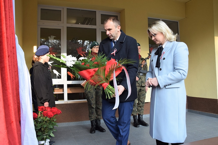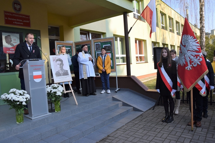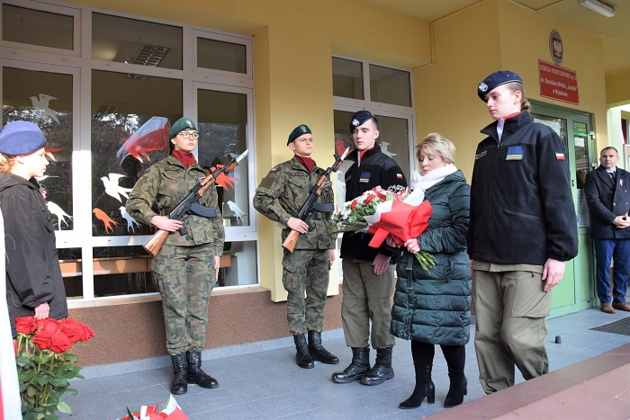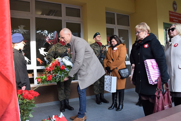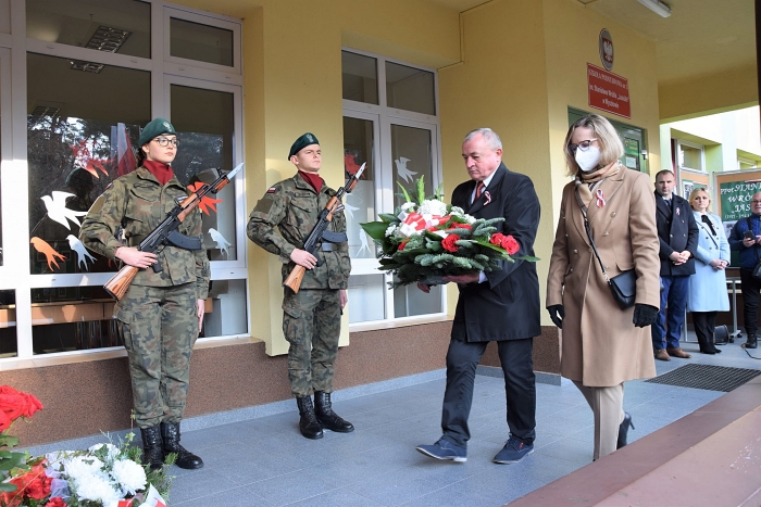 (Zam: 12.11.2021 r., godz. 10.52)Po mszy odprawionej w miejscowym kościele uczestnicy przeszli do Szkoły Podstawowej nr 3. Z okazji nadania placówce imienia Stanisława Wróbla „Jaskółki” poświęcono jej sztandar, a także odsłonięto tablicę upamiętniającą patrona.