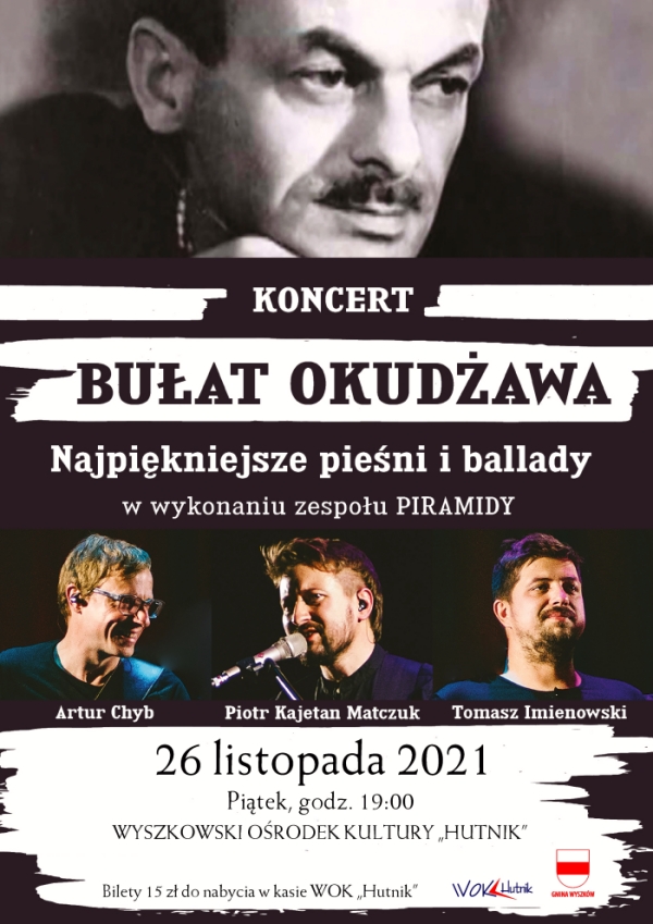 (Zam: 23.11.2021 r., godz. 13.26)Będzie można usłyszeć największe przeboje Bułata Okudżawy, zarówno w języku rosyjskim, jak i w doskonałych polskich tłumaczeniach (Młynarski, Osiecka, Mandalian, Kołakowski). To jedyny taki koncert oparty na twórczości wybitnego rosyjskiego barda. Muzycy wybrali najbardziej znane utwory, np. „Piosenkę o niebieskim baloniku”, „Wybaczcie piechocie”, „Piosenkę o papierowym żołnierzyku”, „Dopóki ziemia kręci się”, „Trzy miłości”, „Ostatni trolejbus”, „Piosenkę o Arbacie”, „Wańkę Morozowa”, „Puszkina” i wiele innych znanych i lubianych piosenek. To będzie 80 minut wzruszeń, zadumy, uśmiechów, powrotu do lat młodości oraz niesamowitych emocji przekazywanych w najlepszym poetyckim, aktorskim i muzycznym wydaniu.