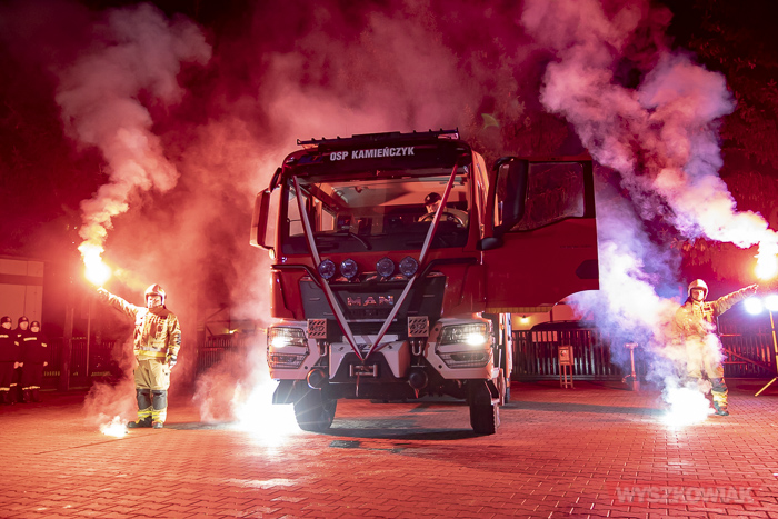 Prezes OSP w Kamieńczyku Marek Kamiński dziękował podmiotom, które wsparły zakup sprzętu. Samochód łącznie z wyposażeniem kosztował ponad milion złotych. Wojewódzki Fundusz Ochrony Środowiska przekazał 327 912 zł, Komenda Główna Państwowej Straży Pożarnej - 200 tys. zł, gmina Wyszków - 230 tys. zł, Urząd Marszałkowski - 90 tys. zł, Wspólnota Gruntowa w Kamieńczyku - 200 tys. zł. OSP w Kamieńczyku dołożyła 70 tys. zł.