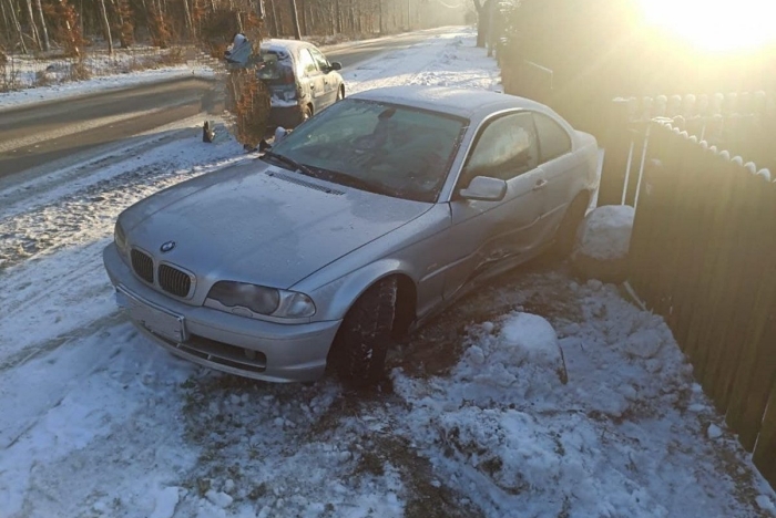 (Zam: 01.12.2021 r., godz. 09.52)Z ustaleń policjantów ruchu drogowego wynika, że kierowca busa nie ustąpił pierwszeństwa przejazdu kierowcy BMW. W wyniku uderzenia osobówka wpadła w poślizg, zjechała na pobocze i uderzyła w ogrodzenie pobliskiej posesji. Nikt nie został ranny.