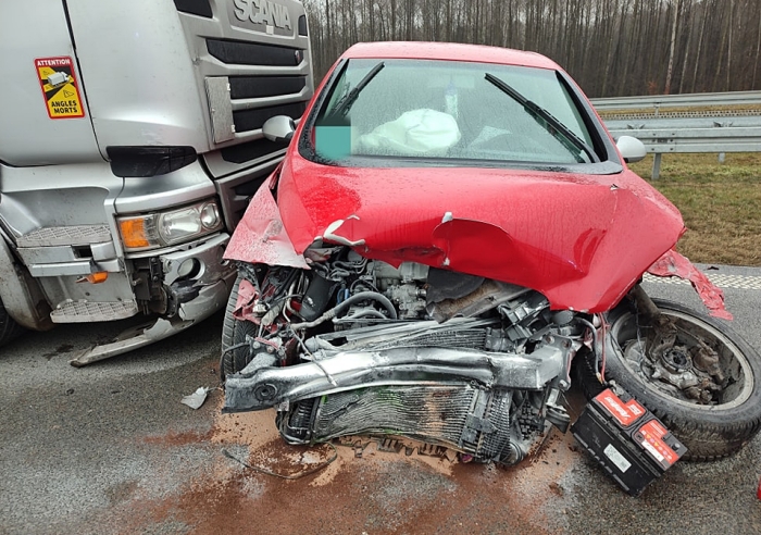 (Zam: 05.01.2022 r., godz. 13.08)Z ustaleń policjantów ruchu drogowego wynika, że 40-letni kierowca seata zmieniając pas ruchu nie upewnił się czy może bezpiecznie wykonać ten manewr i doprowadził do zderzenia z jadącym w tym samym kierunku samochodem ciężarowym oraz uderzył w barierę energochłonną.