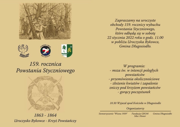 (Zam: 19.01.2022 r., godz. 10.20)Obchody rozpoczną się o godz. 11.00 mszą w intencji poległych powstańców. Po niej przewidziano przemówienia, złożenie kwiatów, zapalenie zniczy, poczęstunek.