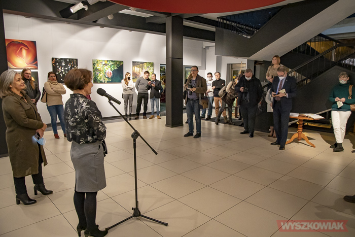 - Z wielką przyjemnością i zazdrością przedstawiam państwu moją najzdolniejszą studentkę, która ma nie tylko pomysły, ale też wspaniałą technikę - stwierdziła. - O malarstwie wie właściwie wszystko, ma wiele pomysłów, czasem muszę ją zatrzymywać, by nie psuła swoich dobrych obrazów. Ta wystawa jest niezwykle czuła, wrażliwa, potrzebna w momencie, w którym jesteśmy wszyscy, kiedy nie możemy się pogodzić z otaczająca rzeczywistością. Takie malarstwo pobudza wyobraźnię, pociesza, pomaga nam żyć.