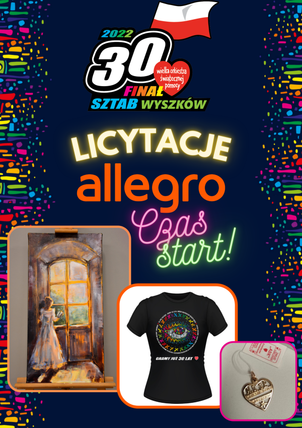 Aukcje na platformie Allegro będą pojawiały się stopniowo, począwszy od 21 stycznia 2022 r., większość z nich zakończy się w dniu finału, 30 stycznia.
