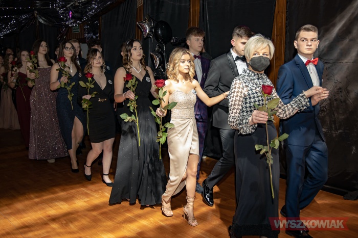 - Studniówka trwa zaledwie jedną noc, niezwykłą, magiczną, która pozostaje w pamięci, wspomina się ją z łezką w oku przez długi czas. Uroczystość ta kojarzy się z gorączkowymi przygotowaniami, jedyną niepowtarzalną nocą beztroskiej zabawy i pięknych wzruszeń - zaznaczyła Elwira Sawicz-Bakuła. - Szkołą jest, była i będzie dla nas zawsze ostroją kultury, tradycji i obyczajów. Aby stało się im zadość, pragniemy nasz bal rozpocząć od dostojnego, staropolskiego tańca.