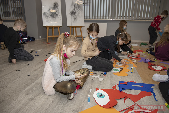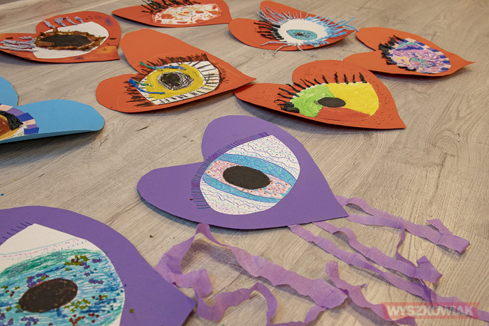(Zam: 25.01.2022 r., godz. 12.30)Wystawę prac Natalii Kupiec „Kolaże wspomnień” można oglądać na III piętrze biblioteki, w sali im. prof. L. Maciąga. Tam też 25 stycznia odbyły się zajęcia, które poprowadziła artystka. Zaproponowała temat związany ze zbliżającym się finałem Wielkiej Orkiestry Świątecznej Pomocy (której symbolem jest czerwone serce) i celem tegorocznej zbiórki (zapewnienia najwyższych standardów diagnostyki i leczenia wzroku u dzieci). W pracach dzieci zawarły symbole - serce i oko - które wykonały różnymi technikami. Uczniów wpierała nauczycielka Katarzyna Czechowska. Rezultatu gratulowała uczniom dyrektor biblioteki Małgorzata Ślesik-Nasiadko. Warsztaty zostały zorganizowane w ramach wolontariatu Szkoły Podstawowej nr 4.