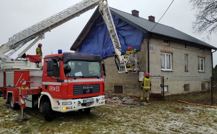W miejscowościach Lipiny i Niegów (gmina Zabrodzie) porywisty wiatr zniszczył ściany szczytowe budynków mieszkalnych. Nikt z mieszkańców nie odniósł obrażeń. Strażacy zabezpieczali tymczasowo budynki plandekami.