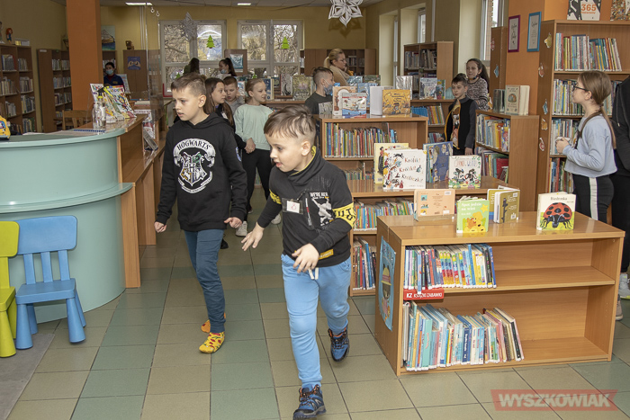 Ostatnia część zabawy to zagadki, które uczestnicy najpierw musieli odkryć we wnętrzach biblioteki, a następnie udzielić poprawnej odpowiedzi. Wszystko sprzyjało integracji, współpracy i kreatywnemu podejściu do zadań.