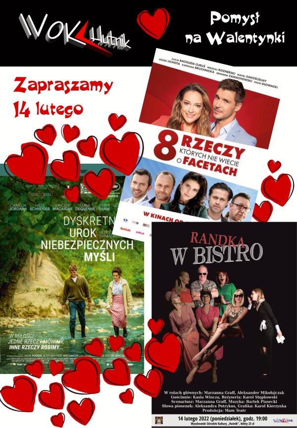 Kino, a może spektakl? Propozycje WOK „Hutnik” na walentynki