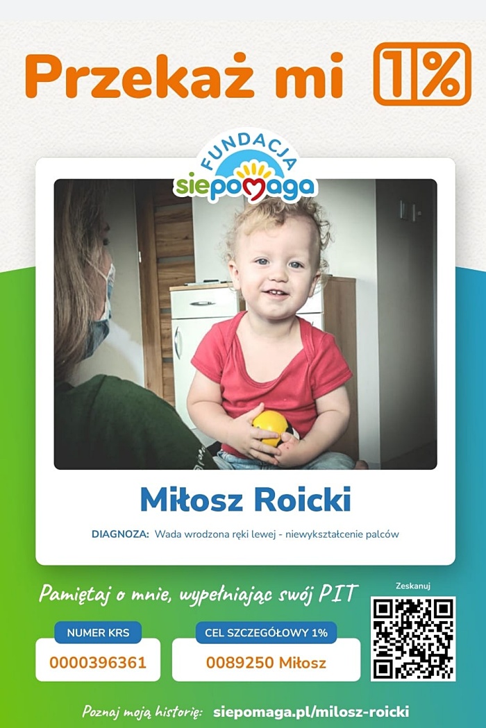 Półtoraroczny Miłoszek Roicki z Wyszkowa urodził się bez wykształconych palców w lewej ręce. Rodzice robią wszystko, aby zapewnić operację, rehabilitację, konsultacje medyczne.