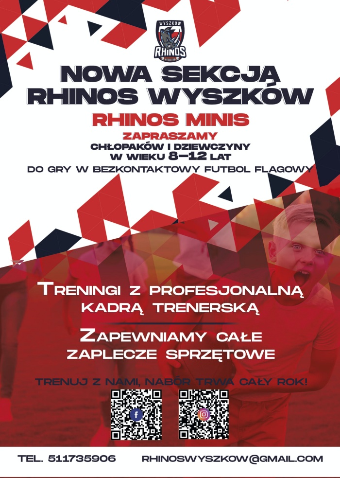 Najmłodsi będą mogli trenować uprawiając bezkontaktowy futbol flagowy. Rhinos Wyszków wkrótce mają przedstawić więcej szczegółów, ale już teraz zainteresowani mogą pisać na rhinoswyszkow@gmail.com lub za pośrednictwem mediów społecznościowych.