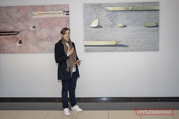 - W obrazach istotny jest każdy element. Poświęcam uwagę detalowi, który wyznacza rytm. Malowanie odbywa się z pełną świadomością, czuję, widzę co robię. Poprzez uproszczenie prac decyduję o tym, że każdy element powoduje napicia między sobą - o swojej twórczości mówiła Kaja Kozon. - Temat ciała dotyczy czegoś, do wychodzi poza samą formę. Czegoś, czego w życiu codziennym, pełnym tak wielu wyzwań, po prostu nie zauważamy. Ciało nie skupia się tylko na formie. Ciało wyznaczone jest przez świadomą jego obecność. Ciało to cały wszechświat, który zaczyna się właśnie tu i teraz. Wnikanie w jego naturę, zasłuchanie sprawia, że nawet kamień jest żywy. Nawet kamień coś mówi.